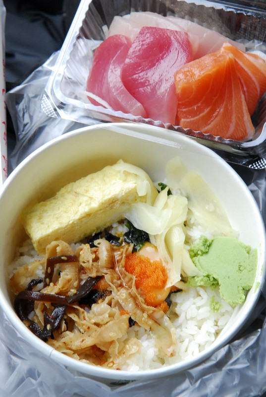 把生魚片都放上去,再淋上店家附的日式醬油,真是歐伊希啊