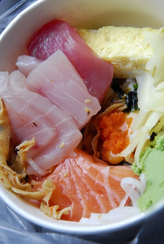 這是丼飯的內容,真是豐盛。還有一杯味噌湯沒拍到...
