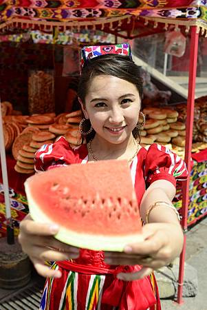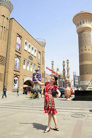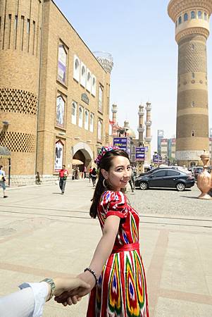 多虧我同事的超積極努力 從天上落下這位年輕可愛的維吾爾族女孩 有她開朗熱情的笑容入鏡加分許多 否則以烏魯木齊的市景來說 要拍到好看的畫面真不容易啊