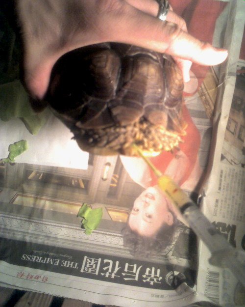 人龜大戰了半個小時,就是無法讓他張嘴。![]()