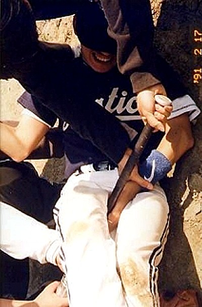 P.S.照片中被ㄚ者是大我兩屆的高中某學長,平時熱心助人而受到眾學弟妹的愛戴,連續十幾年蟬連『柱神』寶座,各種ㄚ魯巴場所與招式他都親身體驗過,輝煌的經歷無人能出其左右,可說是往後學者研究八O年代ALUBA熱潮的最佳見證者。小弟在此向他老人家致上最高的敬意!直到今日,每次聚會完,眾人把他抬起來ㄚ一下已成例行活動;這張照片是在2002年壘球友誼賽後的『敬天祈福儀式』所拍,ALUBA的道具是當天使用的球棒,他也兼當本球團的吉祥物呢!