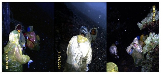 在外頭穿好雨衣、戴上頭燈準備出發