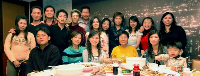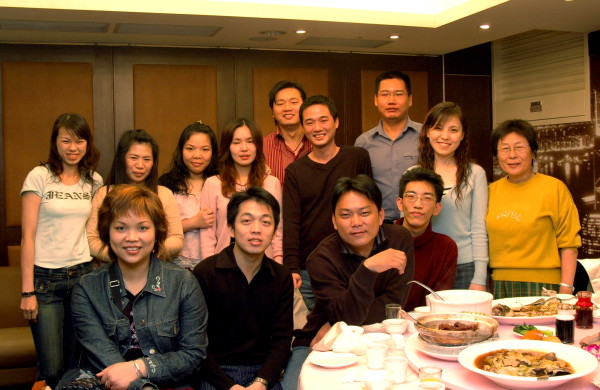 吃飯吃到一半來拍大合照。仔細數人頭,發現沒有易美蓮同學,跑去那兒了?