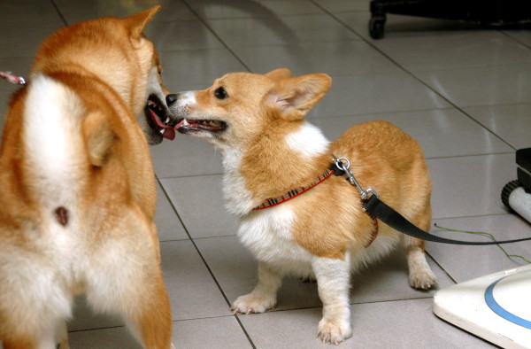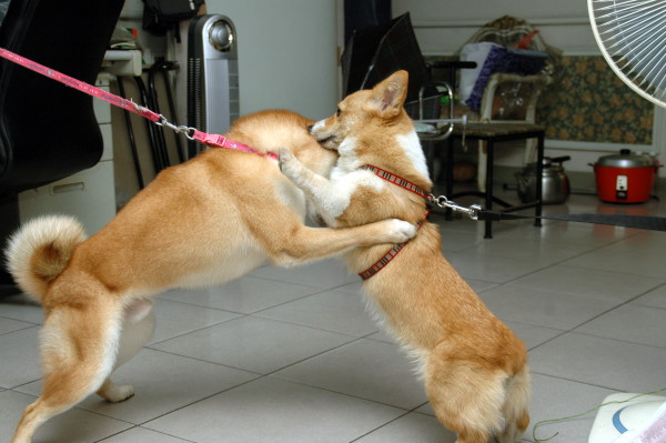 才一靠近兩隻狗就開始「打」起來了。
