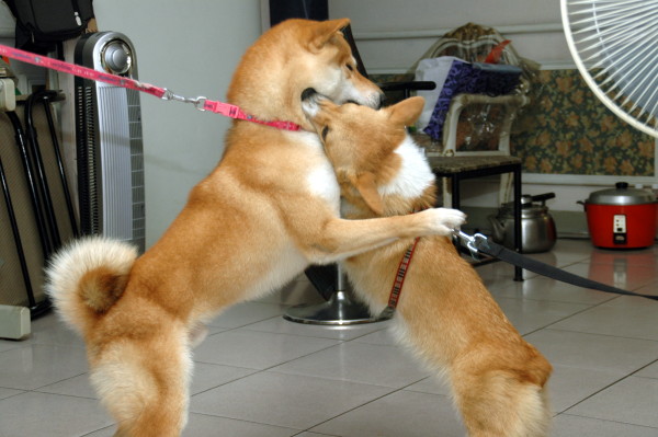 雖然兩隻狗的表情都非常猙獰凶狠!其實他們是在玩啦~
