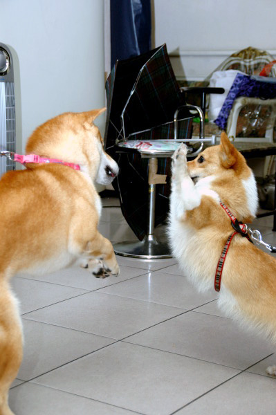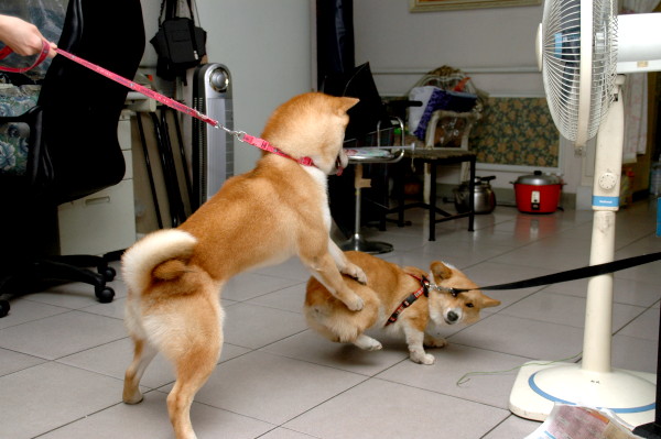 話說一家不容二犬,ㄚ,不是,由於多多正值發情,未免這對曠男怨女擦出愛的火花,最後生出奇怪品種,讓多多暫時移到店裡,仟二則住在陽台。
