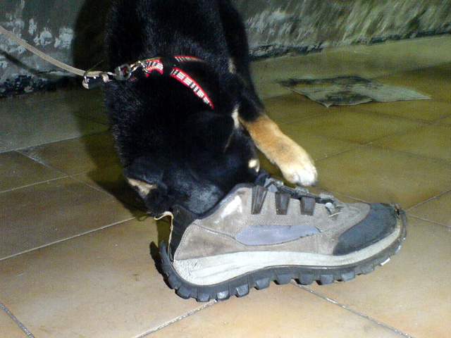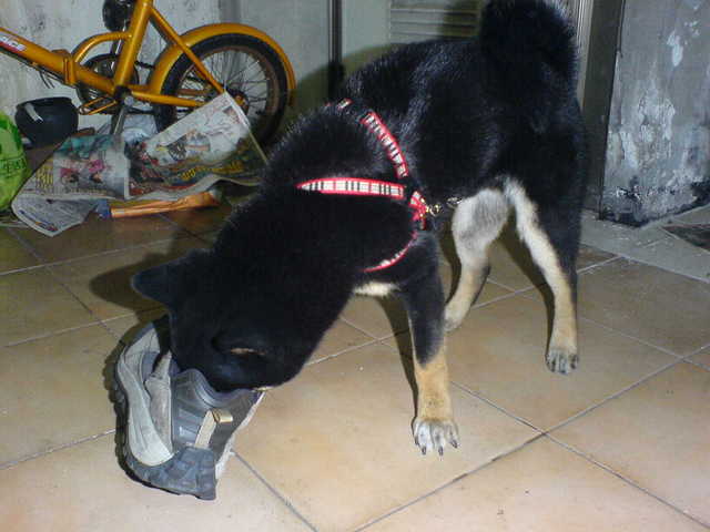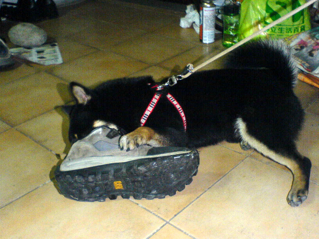 跟一隻臭鞋可以玩的這麼高興,真是單純的小狗。