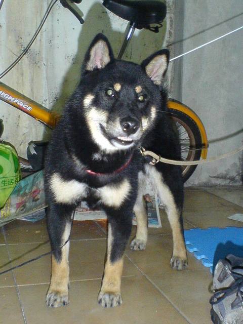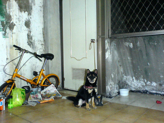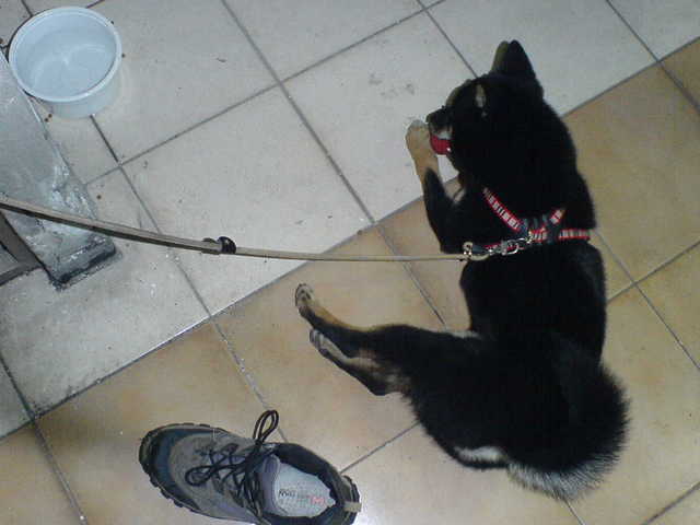 睡覺前帶牠下樓去小便,順便跑一下步。不過發現我用跑的,這傢伙居然只是快步走,真是狗眼看人低!爬上六樓後也喘了,露出多日來難得的笑容。