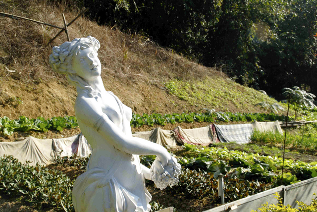 帶著制式的燦爛笑容,堅守看護菜園的崗位。委屈妳了!