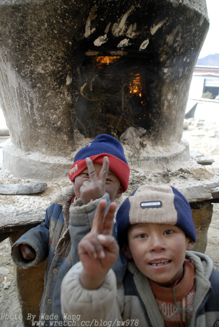 我想拍燒桑煙的白塔,沒想到這兩個小傢伙從底下冒出來搶鏡頭。