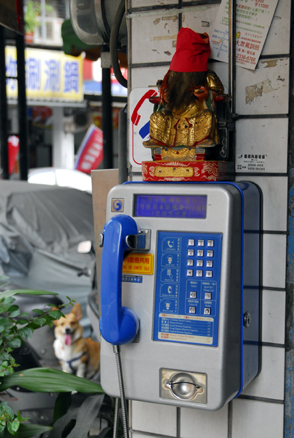 某天我家託管的公共電話上 被放置了一尊土地公像 頭部以紅布纏繞 不知道是尚未開光? 或背棄的人怕被神明知道身分? 奇怪 迷信神蹟出明牌的熱潮不是早過了 怎麼現在還有這種事情發生 比起日前在八里某洗腳柱下的斑駁神像 這尊土地公像至少仍保有光鮮外貌 畫面中出現一個熟悉的笑容 各位看官有發現嗎? P.S.過了幾天,神像不知去向,希望是由善心信眾帶回供奉才好....