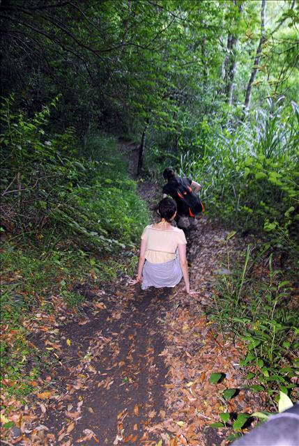 前往瀑布的路不明顯且狹小,即便這兩天是大晴天,森林裡的部份地面依舊潮濕不堪。由於瀑布行程是臨時起意,幾個人沒穿走路鞋出來,為了安全考量,4人折返,另4人繼續前進。