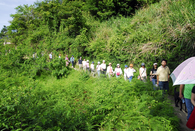 走到登山口,有一隻小黑悠哉地趴在路邊,雖然說好狗不擋路,眾人還是繞過他行走。此時有人開玩笑說:「小黑,不要一直坐著,趕快跟我們出發。」結果....小黑真的起身了!