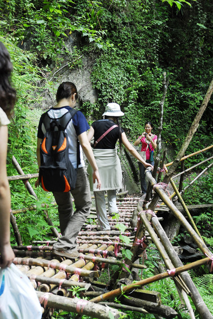 由於我們出發算晚的,因此到這裡已經遇到折返的遊客,這座橋只能容納單人通過,大家都很有耐心地等待通過。
