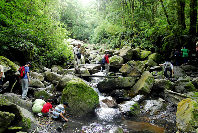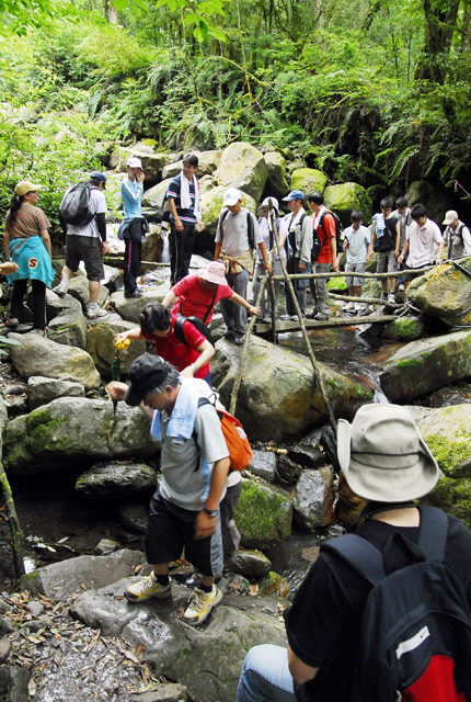 還好現在是枯水期,眾人得以輕鬆度過溪床。