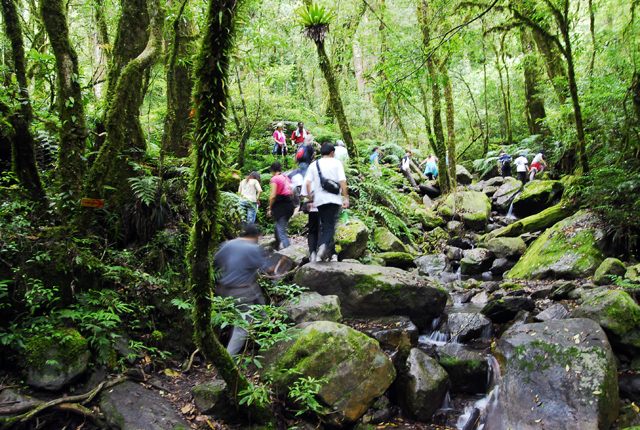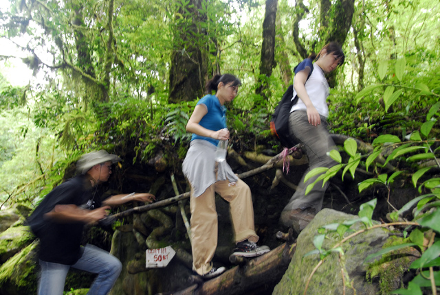 早上整個雅竹園餐廳幾乎爆滿,吃飽的人就慢慢上路,人龍絡繹不絕。跟我最初想像清幽的山林之旅有些出入。