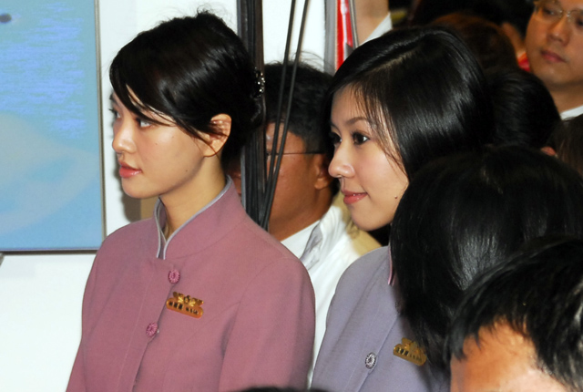 這次找來跟志玲姐姐合拍華航2008月曆的12位空姐到場,這兩位的姿色與氣質都不錯。