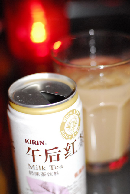 跟我去過pub的人都知道我很遜,幾乎不點酒都喝可樂,今天換個口味,來杯奶茶吧!20塊人民幣,真他乃奶的貴,還以為是調好的,結果鐵罐直接擺出來。