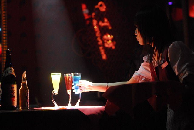 最後不知從哪裡生出4杯顏色鮮豔的調酒,端上台供現場客人出價拍賣,到這裡我們覺得無趣就起身閃人了。
