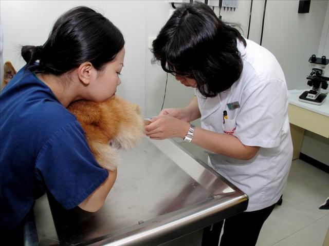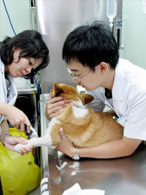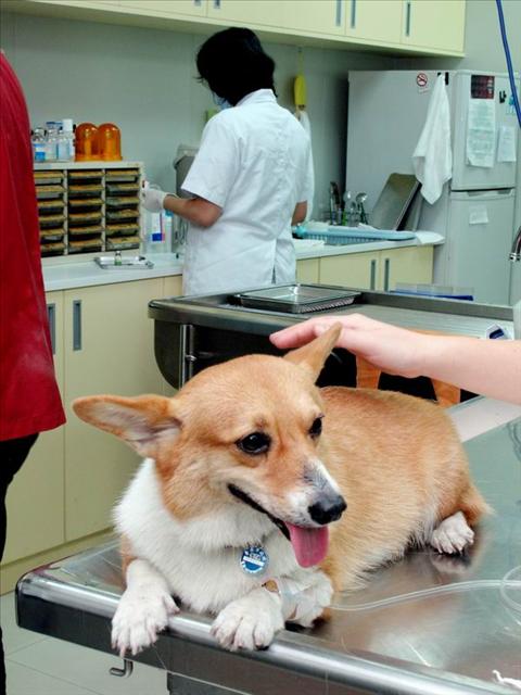 仔仔也很乖,靜靜趴在診療下。不過因為那地方不大,所以多數時間是阿米仔帶他在外面候診室等待。