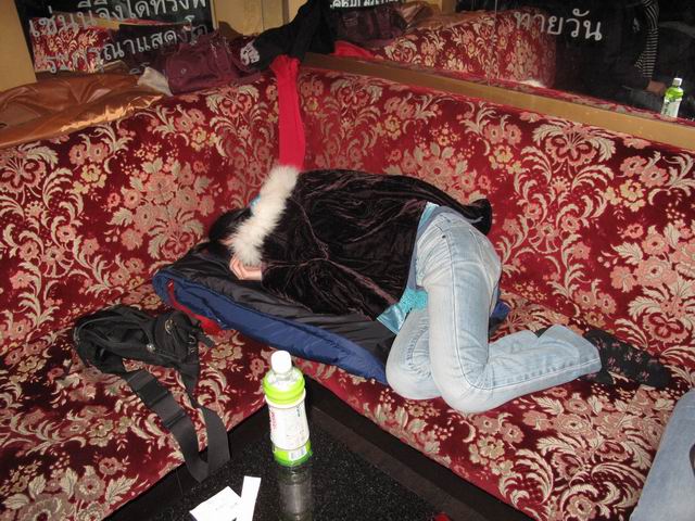 從早上11點開始唱到下午五點共6小時,好久沒唱這麼久了,還好包廂很大,大家輪流在沙發椅上躺著補眠。