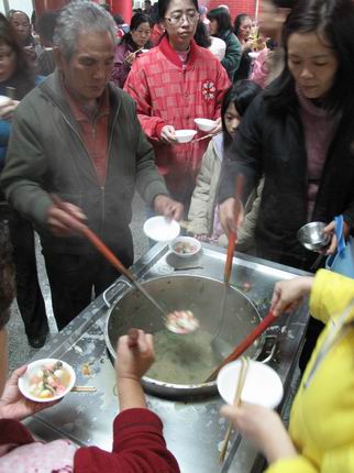 拜拜完就可以到後方享用湯圓了,想吃幾碗盡量舀,這鍋還沒吃完另一鍋剛煮好的馬上推出來。
