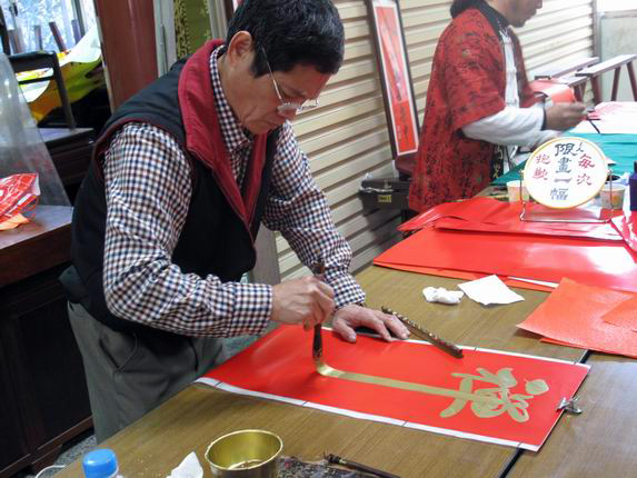 我跟阿米仔最喜歡這位書法家寫的春聯,不僅字跡漂亮,用金色的墨水書寫更為特別。