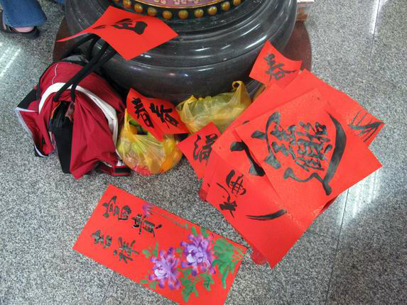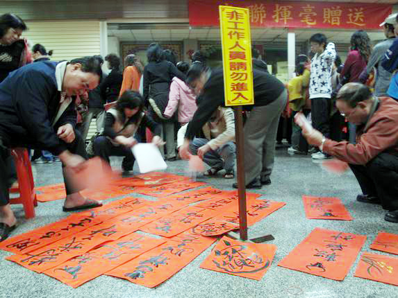 有人還拿剛出爐的春聯去過爐,希望貼在家裡外更能帶來喜氣跟好運吧