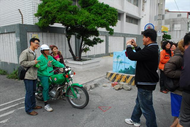 我到沒多久,後方突然出現一陣驚動,原來是一位騎著車、全身標準打扮的郵差伯伯。原來他是正港恆春郵局的郵差,名叫劉茂雄,可說是電影中「茂伯」角色的真實化身。這位「茂伯」非常和藹可親,對於眾多遊客的拍照請求來者不拒,阿伯作夢應該都沒想過,會有人爭相要跟他合照的一天吧