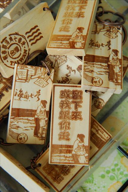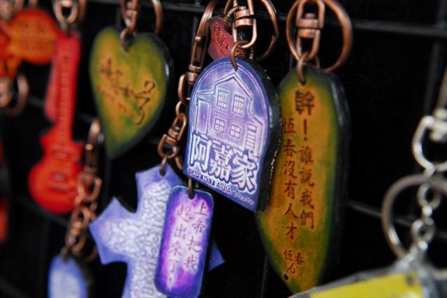 走進阿嘉的家的騎樓,屋主擺出各種「海角七號」相關紀念品,其中以鑰匙圈佔最多數,每個50~100塊不等,幾乎都是寫上電影裡的經典台詞。
