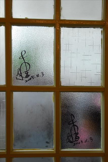 在阿嘉的家外面可以盡情拍照,若要進入裡面參觀就得付50塊清潔費。關上很有古早味的木製拉門,就會看到電影裡友子喝醉拿鞋子砸破的兩處部位,新補上的兩遍玻璃都有田中千惠的親筆簽名。