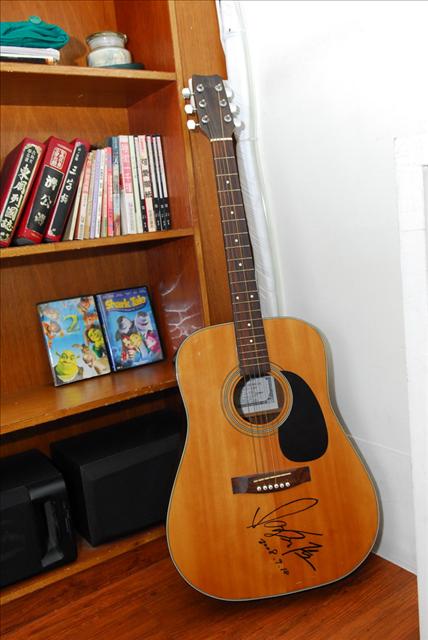 角落放了一把范逸臣親筆簽名的吉他。據說這是屋主的兒子所有,正巧他的名字裡也有個「嘉」,是正牌的「阿嘉」。
