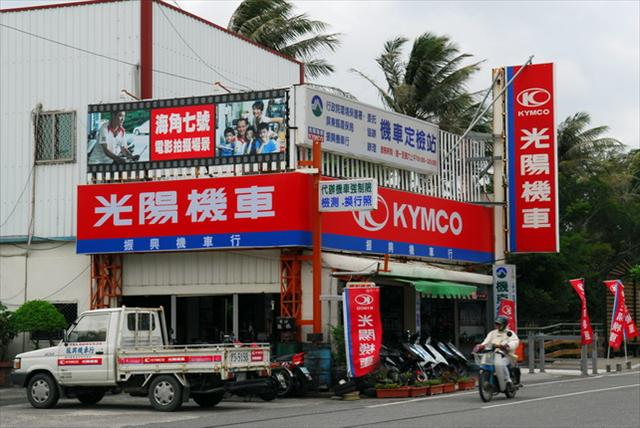 這家機車行在恆南路上,如果從恆春市區往墾丁方向,繞過南門不久再左邊可看到它,上方牆上還貼著大大的看板,寫著「海角七號拍攝場景」,旁邊則是水蛙、老闆娘與三胞胎的合照。據說這家機車行是海角七號熱潮裡,受惠最少的拍攝場景。這也難免,總不會有遊客刻意把機車弄壞牽去修理吧。況且店裡修車師傅們真的在忙,除非老闆娘是位風韻猶存的少婦,或是老闆真的有可愛的三胞胎兒子。