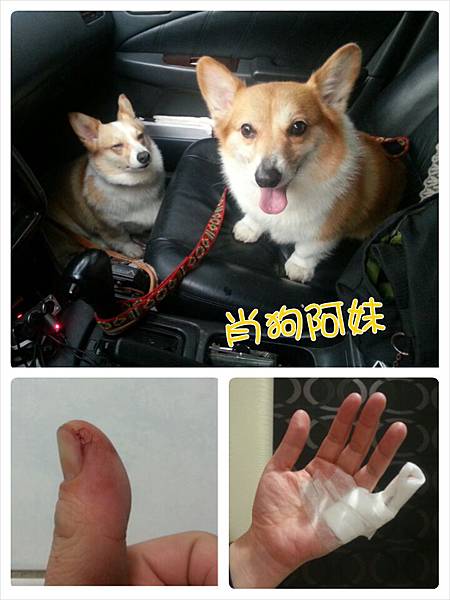 開店跟有了小孩後,很少帶店狗到戶外,今天心血來潮帶小麥跟阿妹去大佳河濱公園跑跑。結果發生我姊被阿妹咬傷手的情事,還去醫院急診包紮(右下圖)。我承認回店裏後狠狠扁了阿妹,有史以來最狠的一次,我氣的是收養了她五年多還這樣,徒手扁她反擊時左手差點被咬下一塊肉(左下圖),盛怒下改拿掃把扁...