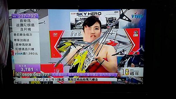 天啊~現在的遙控直升機便宜到讓人想哭!買主持人手上的大台送右邊小台才3781元,還可以6期0利率!兩個女兒在旁邊剛好也看到購物台介紹,在我內心拉鋸掙扎的時候,兩隻一起吵:「把巴我想買~把巴我想買~」